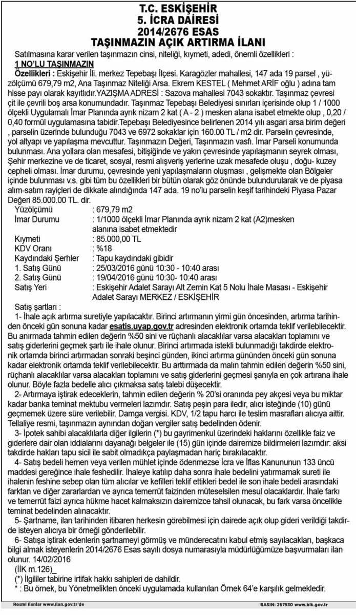 T.C. ESKİŞEHİR 5. İCRA DAİRESİ