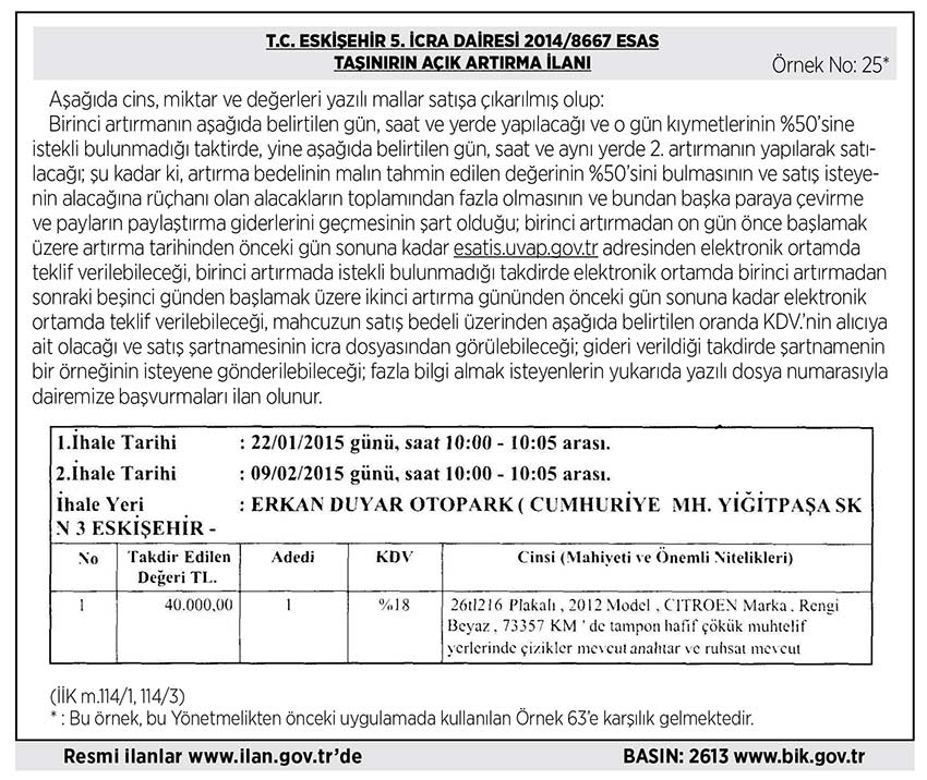 T.C. ESKİŞEHİR 5. İCRA DAİRESİ