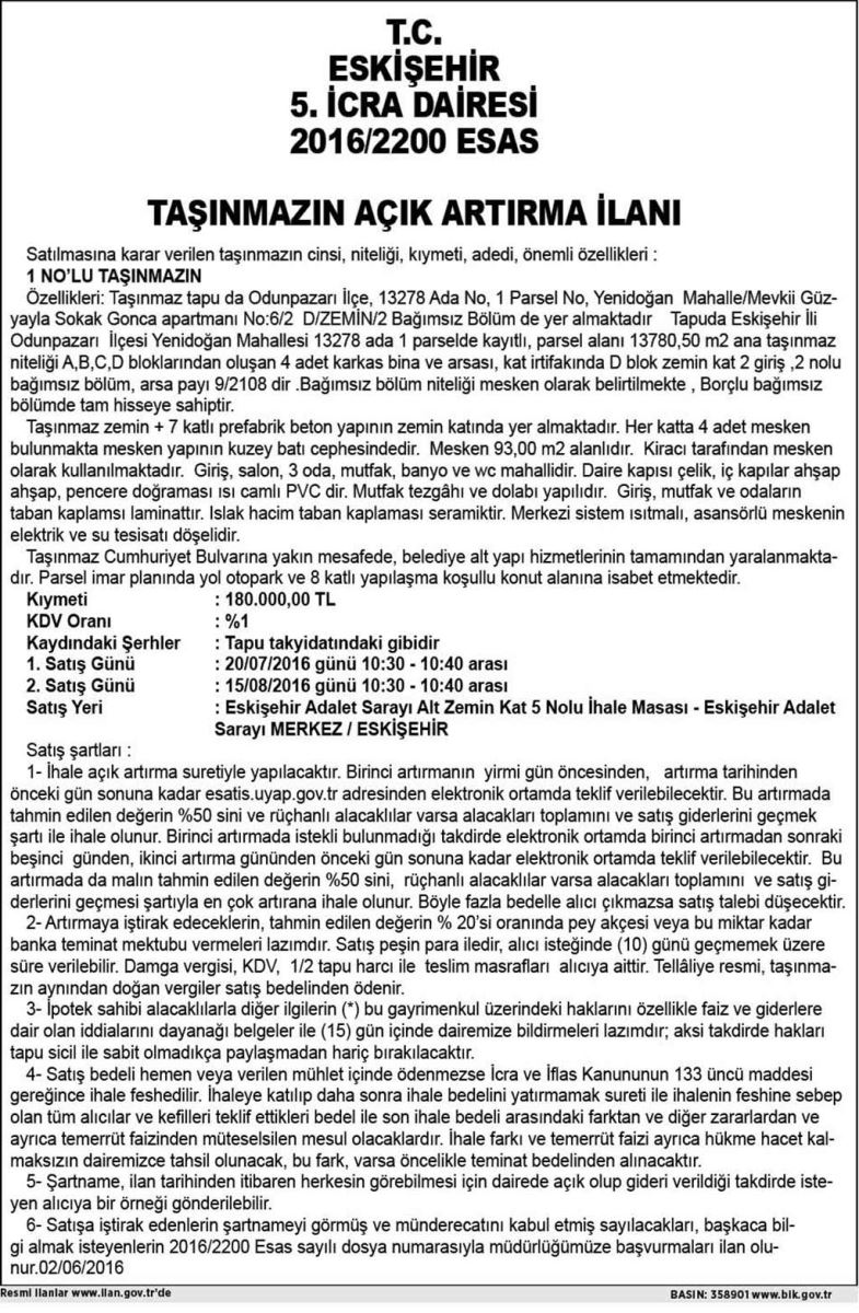 T.C. ESKİŞEHİR 5. İCRA DAİRESİ