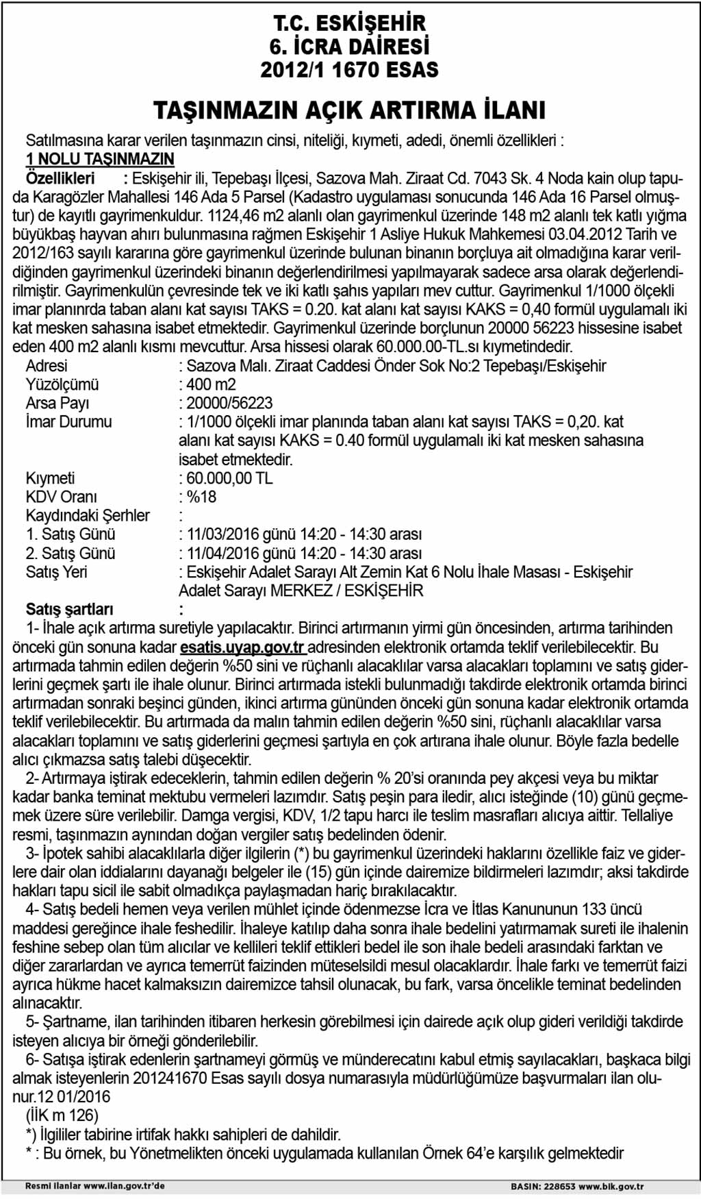 T.C. ESKİŞEHİR 6. İCRA DAİRESİ