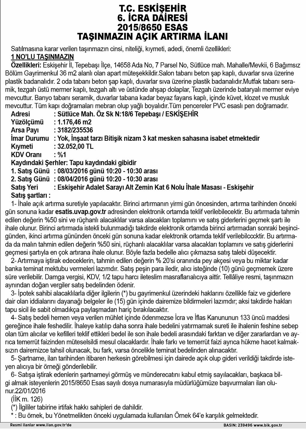T.C. ESKİŞEHİR 6. İCRA DAİRESİ