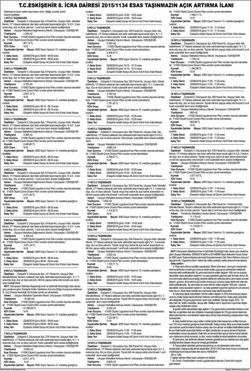T.C. ESKİŞEHİR 8. İCRA DAİRESİ