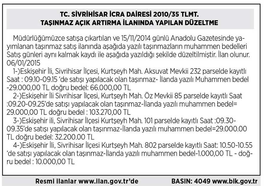 Resmi İlanlar