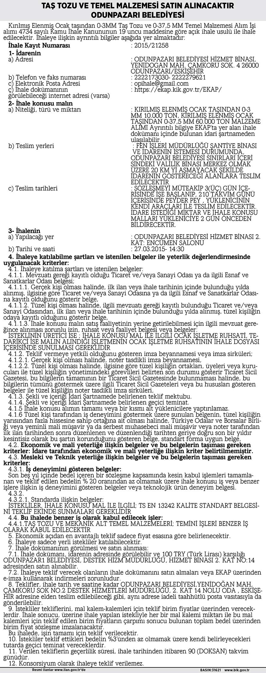TAŞ TOZU VE TEMEL MALZEMESİ SATIN ALINACAKTIR
