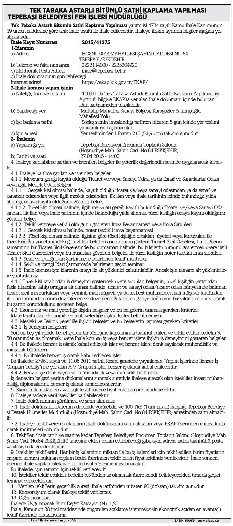 TEK TABAKA ASTARLI BİTÜMLÜ SATHİ KAPLAMA YAPILMASI