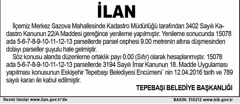 TEPEBAŞI BELEDİYESİ - İLAN