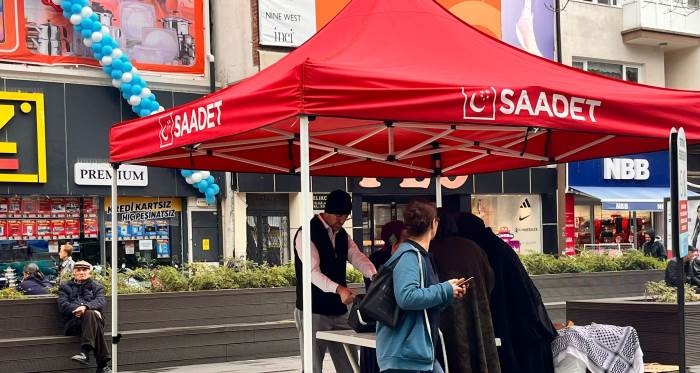 Eskişehir’de Saadet Partisi, Hamamyolu Caddesi’nde açtığı stantta vatandaşlarla bir araya gelerek ekonomik sıkıntılar ve yerel hizmetler üzerine görüş alışverişinde bulundu ve parti politikalarını paylaştı.