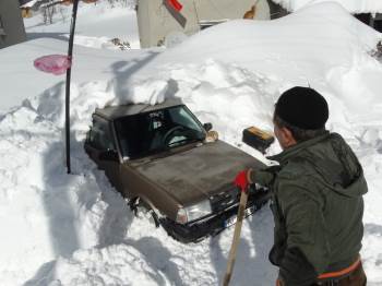 Kara teslim olan köyü, esaretten kurtarmak için il ve ilçe özel idare ekipleri araçları ile köylülerde traktör ve küreklerle yolları ve kar altında kalan evleri açmak için seferber oldular.
