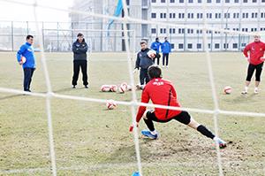 Kaleciler Boffin ve Kayacan Erdoğan’ın sakatlığı nedeniyle dün yapılan antrenmanda Siyah Kırmızılı ekip 2 kaleci ile çalıştı.