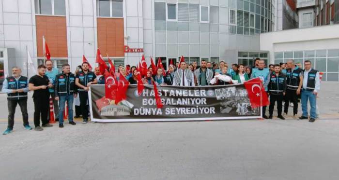Sağlık-Sen Eskişehir Şube Başkanı Hasan Hüseyin Köksal, Gazze’de İsrail’in bombaladığı ve birçok sivil vatandaşın hayatını kaybettiği hastane saldırısına tepki göstererek, yapılan saldırıları kınadı. Köksal, “İlk kıblemiz Mescid-i Aksa için, Kudüs için, bombardıman altındaki Gazze için buradayız! Vurulan, yıkılan hastanelerdeki bebekler için, şehit olan sağlık çalışanları için buradayız! Gözü yaşlı analar, bağrı yanık babalar için, Süt kokulu bebekler için, Vicdanların sesi olmak için buradayız” diyerek Filistin’e destek verdi.