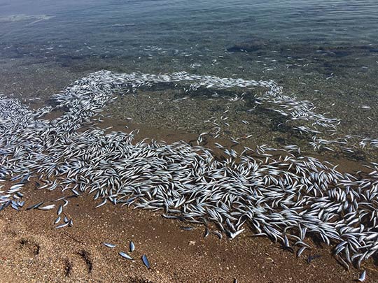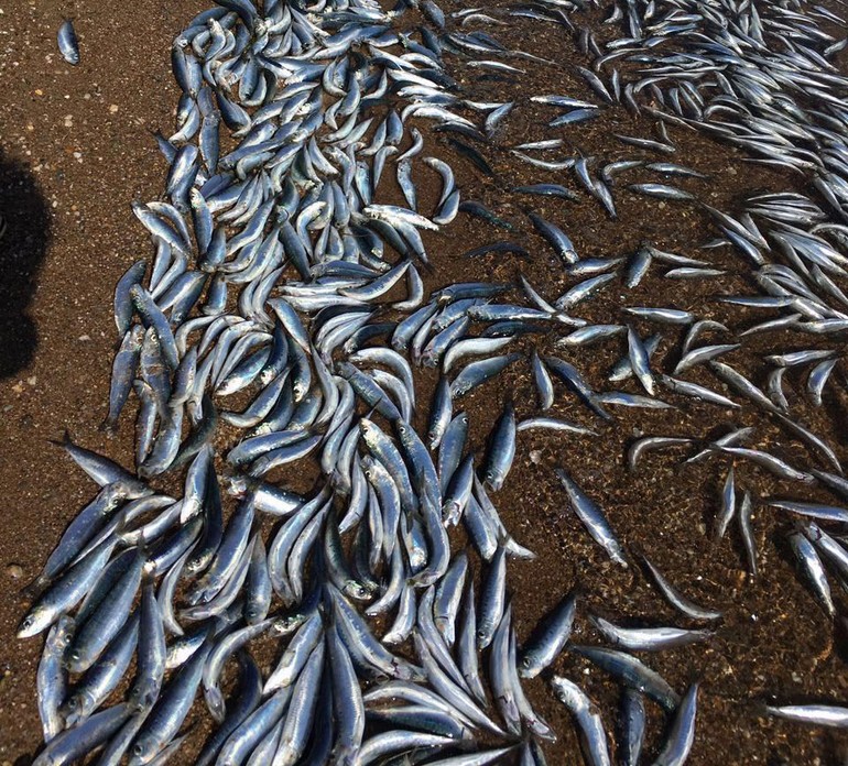 Sahile vuran yüzlerce sardalya korkuttu