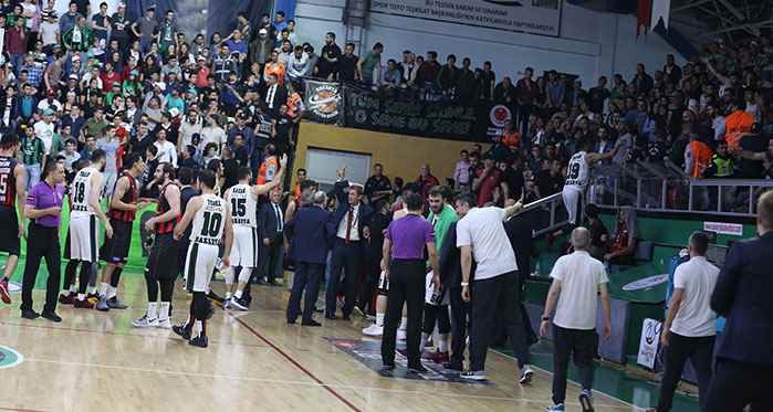 Maçın son çeyreğinde Siyah Kırmızılı benche yabancı cisimler atan Sakarya taraftarları teknik ekipten Semih Uslu’nun yaralanmasına neden oldu. Ayrıca Başkan Sinan Özeçoğlu’na protokolde saldıran Sakarya cephesine cezaların verilmesi bekleniyor.