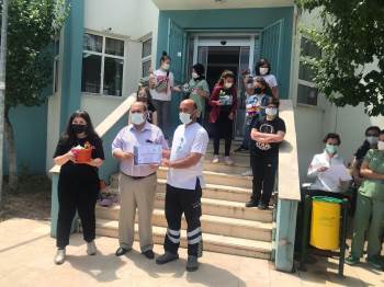 Atatürk Ortaokul Öğrencilerinin Tohumdan Fidana Kadar Büyük Bir Özveri İle Kendi Tasarladıkları Ve Geri Kazanım Yöntemiyle Oluşturdukları Saksılarda Büyüttükleri Çiçekleri Sağlık Çalışanlarına Sertifikalı Olarak Teslim Ettiler