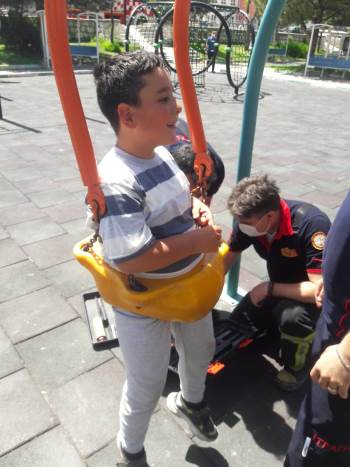 Salıncağa Sıkışan Çocuğu İtfaiye Kurtardı