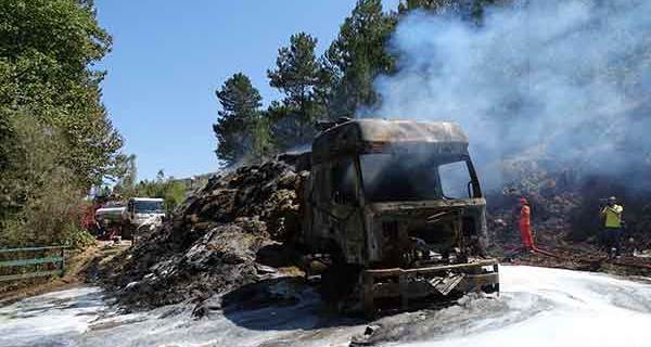 Videoyu Aç Saman yüklü TIR yandı, alevler ormana sıçradı