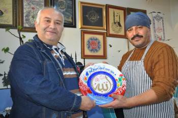 Kaligrafi yazılı tabak siparişi veren lokanta müşterisi Cem Yiğit, “Bu iş yerinin yan komşusu olarak buraya geldiğimde sanat eserlerini seyrederken daha çok iştahım açılıyor. Sanat çalışmaları ile ilgili bir siparişim var, tamamlanınca alıp evime asacağım” dedi.
