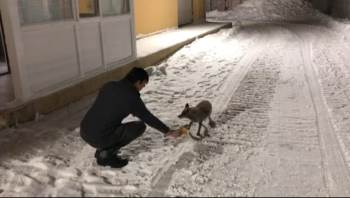 Videoyu Aç Şantiye Çalışanları Anne Tilki Ve Yavrusunu Elleriyle Besliyor