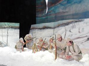 Sarıkamış'ta 99 yıl önce 90 bin Türk askerinin şehit oluşunun canlandırıldığı oyunda, sahneye suni kar makineleriyle kar yağdırıldı. Eskişehirlilerin yoğun ilgi gösterdiği tiyatro gösterisinde duygulu anlar yaşandı. (HM)