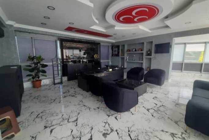 Öte yandan belediye binasına gelen vatandaşlar makam odasında MHP logosunun Türk bayrağından daha büyük tasarlanmasına da tepki gösterdi.