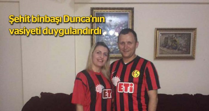 Vasiyetinde, Türkiye Cumhuriyeti ilelebet payidar kalsın diye can verdiğinin bilinmesini talep eden Dunca, eşi ve kızıyla beraber yaptıkları tatil planlarını şehit düşmesi halinde ertelememelerini istedi.