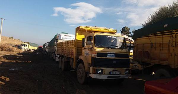 Videoyu Aç Şeker Fabrikası önünde metrelerce tır ve kamyon kuyruğu