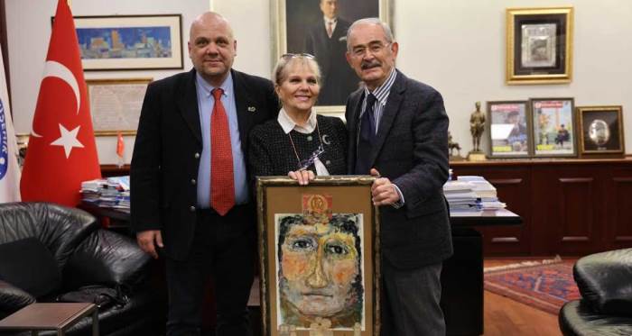Kültür sanat üzerine keyifli bir sohbetin yapıldığı ziyaret, Serpil Akyıl’ın Büyükerşen’e hediye ettiği tablo ve çektirilen fotoğrafla sona erdi.