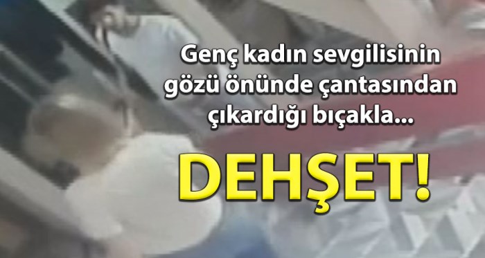 Bursa'da erkek arkadaşından ayrılan genç kız sevgilisinin gözü önünde kendini bıçakladı. O anlar güvenlik kamerasına saniye saniye yansıdı.