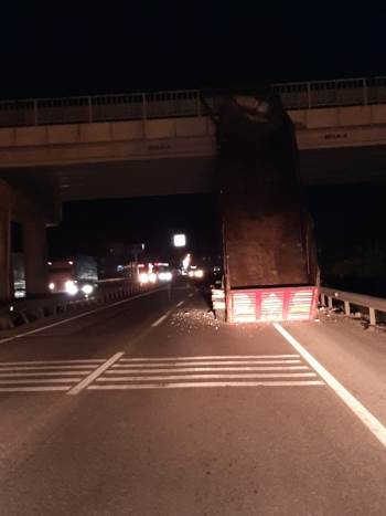 Seyir Halindeyken Dorsesi Açılan Kamyon Köprüye Çarptı