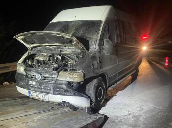 Seyir Halindeyken Yanan Minibüsün Şoförü Son Anda Kurtuldu