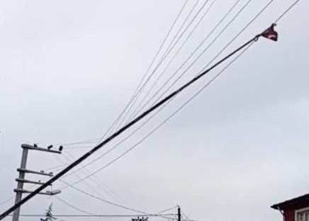 Eskişehir'in Seyitgazi ilçesinde fırtınanın etkisiyle devrilen 30 metrelik bayrak direği, elektrik tellerine çarparak büyük tehlike oluşturdu.