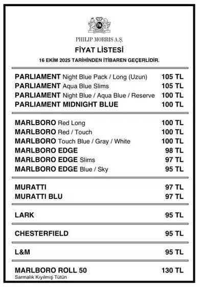 Türkiye’deki tütün pazarının önde gelen firmalarından Philip Morris, yaptığı son fiyat güncellemesiyle sigara fiyatlarını artırdı. Şirketin markalarına göre değişmekle birlikte, en ucuz sigara 95 TL, ortalama fiyatlar ise 100-105 TL seviyesine yükseldi.