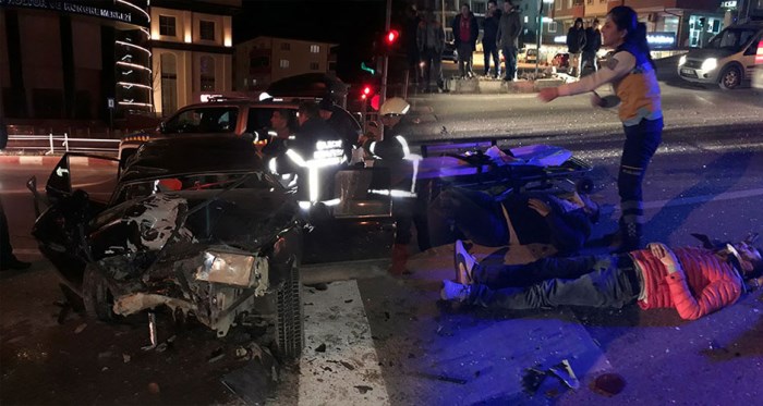 Bilecik'te kırmızı ışıkta bekleyen otomobile başka bir aracın çarpması sonucu meydana gelen trafik kazasında 3 kişi yaralandı.