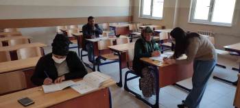 Cumhurbaşkanı Recep Tayyip Erdoğan ve eşi Emine Erdoğan tarafından başlatılan Okuryazarlık Seferberliği kapsamında Halk Eğitim Merkezi Müdürlüğü hizmet binasında okuma-yazma bilmeyen yetişkin vatandaşlara yönelik açılan toplam 80 saatlik 1. Kademe Okuma-Yazma Kursu’na 4 kursiyer katılıyor. (MA-EFE)