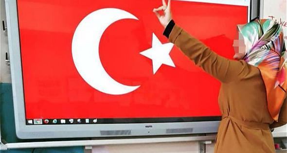 Sınıfta öğretmenin bozkurt işaretine inceleme