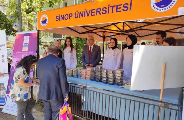 Sinop Kapalı Pazaryeri girişinde düzenlenen hayır etkinliğinde Sinop’a özgü nokul, kurabiye, tarhana, mercimek köftesi, yaprak sarma gibi geleneksel lezzetler vatandaşların beğenisine sunuldu. Etkinlik kapsamında elde edilen gelirlerin, Gastronomi ve Mutfak Sanatları Bölümü uygulama mutfağına malzeme alımında kullanılacağı belirtildi.