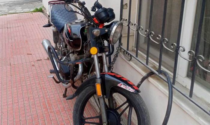 Eskişehir’in Şirintepe Mahallesi’nde park edilen bir motosikletin ilginç kilitlenme şekli görenlerin dikkatini çekti. Kaldırım üzerine bırakılan motosiklet, ön tekeri uzun bir zincirle pencere demirine bağlanarak güvence altına alındı.