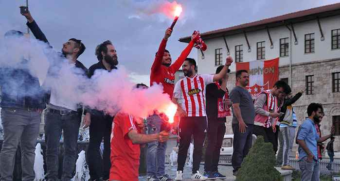 Sivassporlu taraftarlar Adana Demirspor maçını kent meydanındaki dev ekran önünde heyecanla takip ettiler. Maçın berabere bitmesinin ardından Eskişehirspor maçından gelecek olan haberini bekleyen taraftarlar Eskişehirspor mücadelesinin de berabere bitmesinin ardından büyük sevinç yaşadı. Müsabakanın bitmesi için büyük coşku yaşayan Sivaslılar, meydanlara döküldü. Taraftarlar, takımlarının kırmızı ve beyaz renkleri ile süslü bayrak, atkı ve formalarla saatlerce eğlendi. Oluşan araç konvoyları klakson çalarak şehir turu attı. Kutlamalar geç saatlere kadar devam etti.