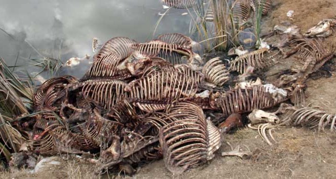 At ve eşekler kesildikten sonra geriye kalan parçalarının torbalara konularak su birikintisi içine atıldığı çevredeki köpek ve kediler tarafından parçaların çıkartılarak etrafa savrulduğu görüldü.