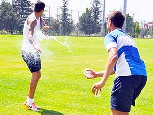 Sportif sakatlığı nedeniyle düz koşuları sürdüren Diego’ya Sinan Ören’in dün yaptığı soğuk su şakası renkli görüntülere neden oldu. Düz koşu esnasında birden üzerine soğuk su atılan Diego’nun Sinan’a verdiği Türkçe tepkiler basın mensuplarını oldukça güldürdü.