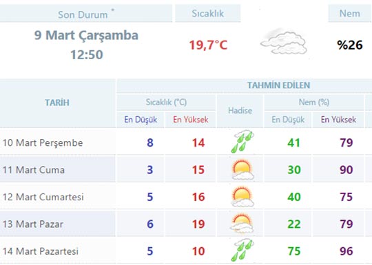 ESKİŞEHİR İÇİN 5 GÜNLÜK RAPOR