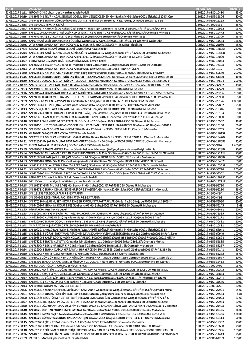 Selam aleyküm canım abim ler ve canım arkadaşlarım oncelik le kadir gecesi mübarek olsun ve ben hic umut kesmedim allah dan insallah amin bu yonetime destek gelcek amin inşallah ve insallah Stan sporur ismini de insallah amin eti alacak ben oncelik cuma baska miz tayip Erdoğan ve bakan miz nebi bey ve tüm es es destek verecek olan herkes allah razı olsun ben destek olamaya beldeye ler ve destek olmaya lar allah vallahi ediyorum bu beldeye secimler de gelir biziler de eskişehirspor tarafadarlarda gerin bilr İzmir Büyükşehir Belediye Başkanı para yardımı buluyor goztep spor bızım buyuk eski hir beldi ye hıse konser heykel para buluyor da bir eskişehirspor yardım et yor lar yazik ben onlar ne deyim ben sadece eskişehirspor sevdalısıyım ben hiç bir parti le ismi olmaz