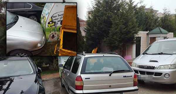 Bilecik'te sokak hayvanları için konulan yemmatiğin önüne park etti ve yemmatiğe zarar verdi.