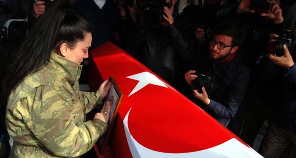 Türk Silahlı Kuvvetleri (TSK) tarafından Afrin’e yönelik başlatılan Zeytin Dalı Harekatı'nda şehit olan Uzman Çavuş Mehmet Muratdağı son yolculuğuna uğurlanıyor. Şehit Muratdağı'nın naaşı helallik için yaşadığı eve getirilirken, parkasını giyen eşi Birgül Muratdağı ağlayanları teselli etti.