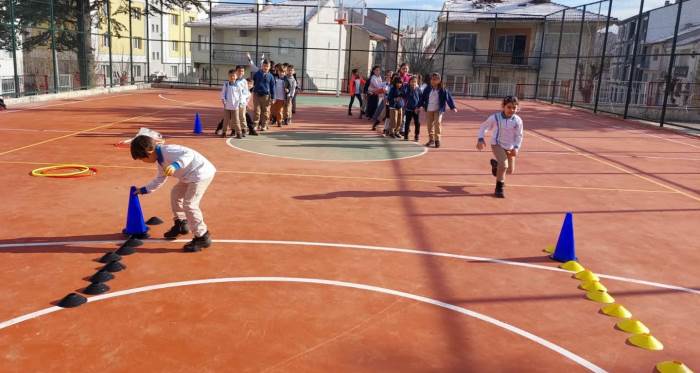 Eskişehir Gençlik ve Spor İl Müdürlüğü tarafından yürütülen Spora İlk Adım Projesi kapsamında Hava İkmal Bakım Merkezi İlkokulu’nda öğrencilerin antrenmanları tüm hızıyla devam ediyor.