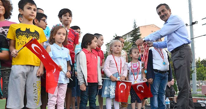Behiç Erkin Spor Sahasında düzenlenen kapanış törenine çok sayıda öğrenci ve aileleri katıldı. Burada konuşma yapan Tepebaşı Belediye Başkanı Dt. Ahmet Ataç, sporun hayatımızdaki yerine dikkat çekerek, “Yeşil Bina özelliğe sahip tesisimiz açıldığı günden bu yana Eskişehirlilere hizmet ediyor. Tesisimizdeki kurslara olan ilgi her gün çoğalarak artıyor. Çocuklarımız yüzme, taekwondo, masa tenisi gibi kurslardan faydalanırken yetişkinlerimize yüzme ve yoga gibi etkinliklerinden yararlanıyor. Ayrıca engelli vatandaşlarımızda özel havuzdan yararlanabiliyor. Sporun hayatımızdan eksik etmemeliyiz. Biz yerel yönetim olarak sizlere sunduğumuz imkanları arttırmayı hedefliyoruz. Çocuklarımız ve yetişkinlerimiz daha çok spor yapabilsin ve sağlıklı olabilsin istiyoruz” şeklinde konuştu.