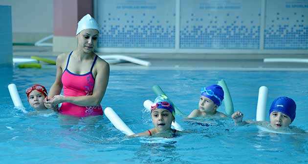 Her havuzda ayrı keyif yaşanan tesiste uzmanlar özellikle yaz aylarında boğulma tehlikesinin arttığını belirterek temel yüzme eğitimi ile çocukların en azından tatilde güvenli olarak yüzmenin keyfini yaşamalarını sağladıklarını belirtti.