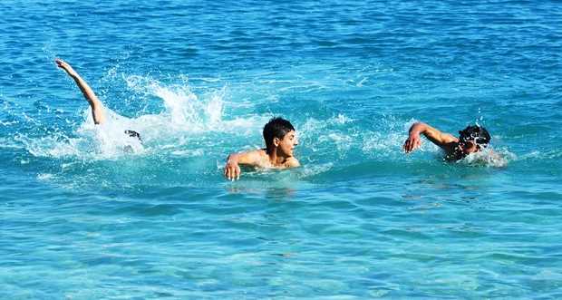 Güneşli havayı fırsat bilen vatandaşlar ve turistler denize girmenin keyfini çıkarıyor.