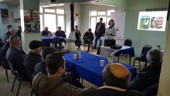 Ziraat Mühendisi Selcen Erol daha sonra çiftçilere hububat yetiştiriciliği, hastalıklar ve zararlılar konusunda slayt eşliğinde bilgi verdi.