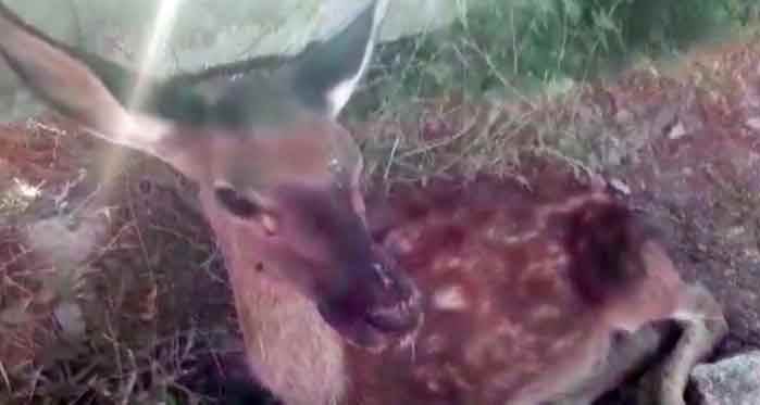 Edinilen bilgiye göre, Mehmet Turhan isimli vatandaş Kütahya’nın Lütfiye köyü ile Eskişehir’in Seyitgazi ilçesi İdrisyayla köyü sınırındaki Türkmen Dağı Kuru Çeşme mevkisinde kuruyan bir çeşmenin yanında susuzluktan bitkin vaziyette adeta ölümü bekleyen bir geyik yavrusu buldu. Turhan, yetkilileri arayarak yavru geyiğin durumuyla alakalı bilgi verdi.