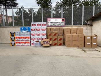 Afyonkarahisar İl Jandarma Komutanlığı ekipleri tarafından kent merkezinde ikamet eden R.A. isimli şahsın yasadışı yollarla temin ettiği kaçak sigara, tütün ve makaronları piyasaya sürerek haksız kazanç elde ettiği tespit edildi. Soruşturma dahilinde şüpheli şahsın evine baskın yapan ekipler 1 milyon 128 bin 200 adet boş makaron, 605 kilogram kaçak tütün, 33 bin 300 gram bandrolsüz açık tütün, 677 adet kullanılmış bandrol, bin 335 adet makarona basılmış kaçak sigara ve 134 adet bandrolsüz 100 gramlık paket tütün ele geçirdi.
